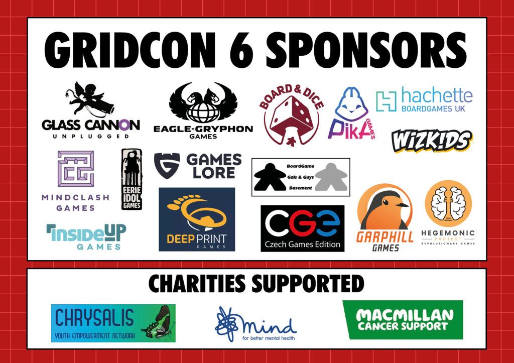 There will be a raffle run during GridCon 6 where you will have the chance to win some fantastic games. Tickets will be only available for purchase at the convention and they will be £5 each. Tickets will be cash only. The draw will take place around 12 noon on Sunday 23rd November, and prizes must be collected that afternoon. The charities benefiting from these donations will be confirmed closer to the event.
